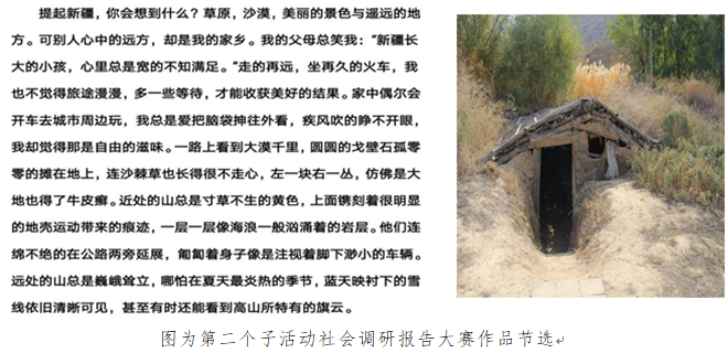 7月25日至8月3日,第二个子活动“爱一方热土,品一乡风华”社会调研报告大赛顺利举行,活动在同学们中产生了巨大反响,共收到了123份实践报告。本此活动采用线下实践,线上分享的方式进行。浓浓乡情,悠悠情思!这是历经五千年岁月摩挲的家乡,这是大漠千里的新疆,这是焕发无尽生机的简阳,是阴雨绵绵的江南小镇,是六朝古都的古香城市......这是同学们笔下的家乡。