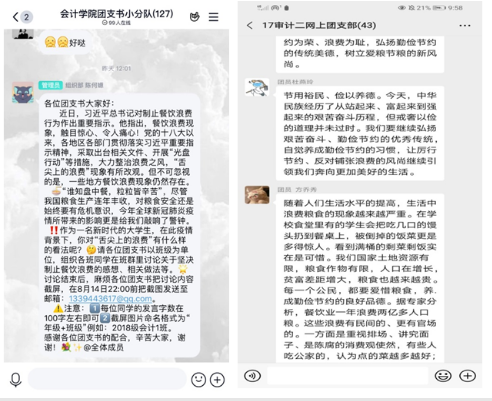 8月14-16日,bb贝博艾弗森官方网站分团委员工会开展了涵盖本硕员工的“拒绝舌尖上的浪费”线上主题团日活动。本次线上团日活动中,同学们认真学习了习总书记对制止餐饮浪费行为作出的重要指示,围绕“拒绝舌尖上的浪费”的主题展开了积极的讨论。从同学们的团日活动中的发言能彰显公司员工作为新一代青年居安思危的意识和坚决反对餐饮浪费的态度,自觉做到反对餐饮浪费,践行勤俭节约的良好习惯。