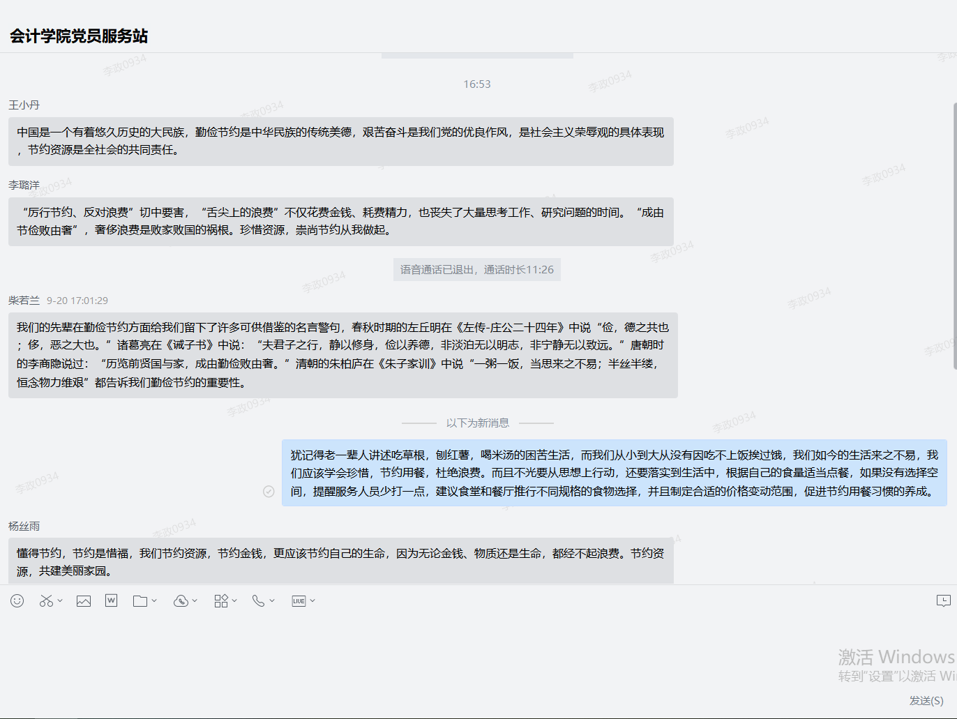 党的十八大以来,习近平总书记一直高度重视粮食安全,提倡“厉行节约、反对浪费”的社会风尚。为贯彻落实习近平总书记重要指示精神,进一步弘扬中华民族勤俭节约的传统美德,在全校形成勤俭节约的良好风尚,员服务站邀请了2019级审计专硕胡赫同学进党员服务站召开主题线上讨论会。