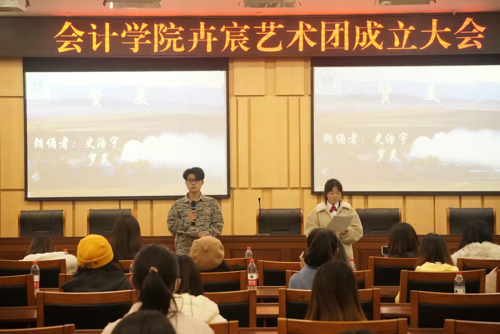 为丰富会计学子的校园生活,培育艺术情操,2021年11月26日18:00,bb贝博艾弗森官方网站卉宸艺术团成立大会在ballbet贝博官方网站南岸校区图书馆第一会议室召开,莅临本次会议的有bb贝博艾弗森官方网站分党委郝颖副书记、分团委书记彭文涛老师、bb贝博艾弗森官方网站各组织代表及卉宸艺术团全体成员。