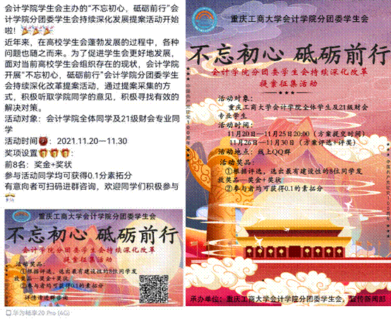 20级会计专硕的李雨颀同学提出了“成立员工组织联合会、建立学院员工工作统一的宣传部们”的建议,并具有一定的新意和可行性。