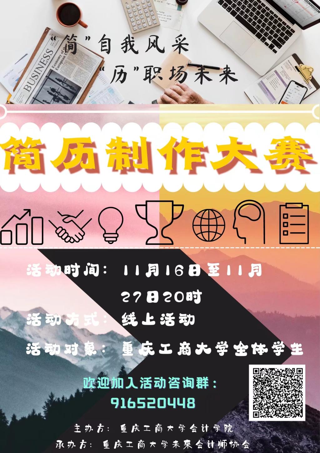 2021年12月7日,由未来会计师协会举办的线上简历制作大赛顺利结束。本次简历制作大赛共有四十一人参与,其中毕业生八人,非毕业生三十三人。以bb贝博艾弗森官方网站罗楠老师、大信会计事务所人力资源佘斯娟老师、重庆汇丰银行戴应星老师为主,未来会计师协会工作人员为辅组成的评审团为简历作品评分。