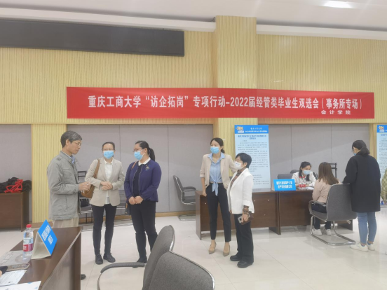 为了贯彻教育部“访企拓岗促就业”专项活动要求,5月20日上午,重庆市注协、bb贝博艾弗森官方网站、大信谛威集团共同主办的ballbet贝博官方网站“访企拓岗”专项行动---2022届经管类毕业生双选会(事务所专场)在田家炳书院50408顺利举行。