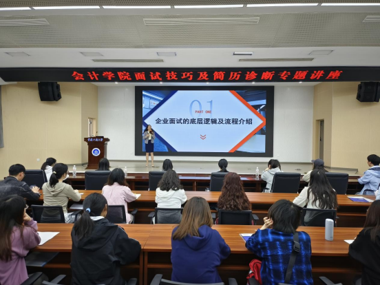 首先,佘斯娟女士为同学们进行了企业面试底层逻辑及流程的详细介绍,解答了“企业通过面试到底考察求职者什么?”“企业的面试流程以及方式有哪些?”等问题。帮助同学们对面试有了更加深入的了解。