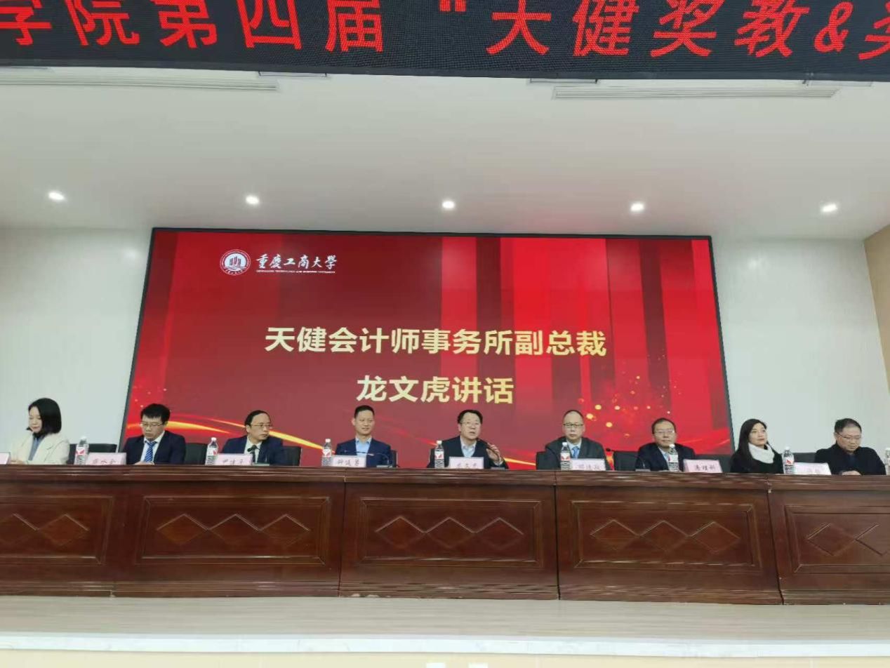 委书记邓德敏作总结讲话。他回顾了bb贝博艾弗森官方网站与天健会计师事务所重庆分所的深厚情谊,感谢天健会计师事务所为bb贝博艾弗森官方网站设立“天健奖教、奖学金”。他指出, 天健会计师事务所重庆分所通过捐资助学,积极参与学校学院人才培养工作,彰显了天健所对重庆工商大学的认可与支持,鼓励会计教育工作者积极投身教育事业。他希望广大师生能够学习天健精神,修身立德、奋发学习,成为一个懂得感恩、对社会有用的人,为学校、学院高质量发展作出贡献。
