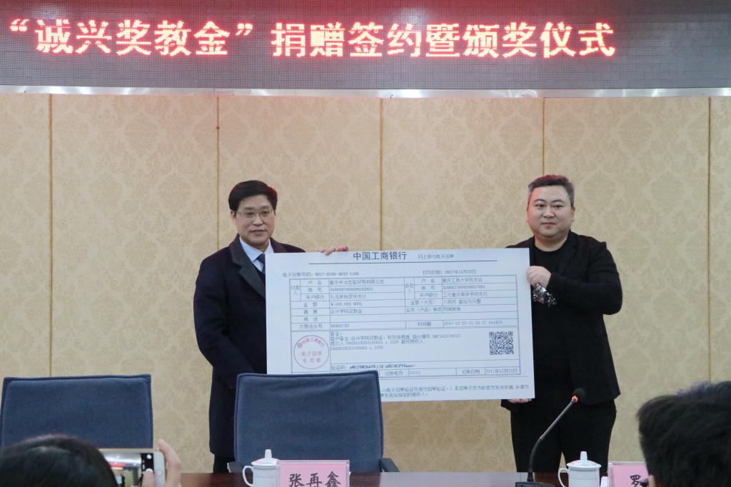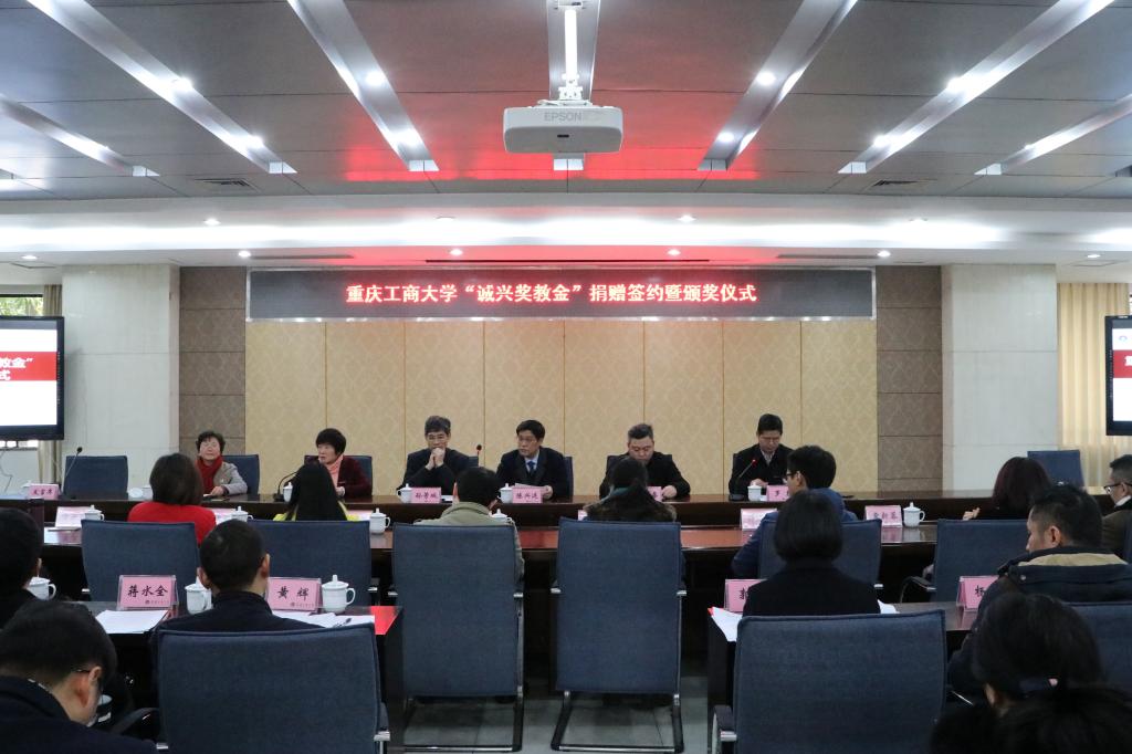 1月12日下午,“诚兴奖教金”捐赠签约及颁奖仪式在厚德楼2017会议室举行。重庆一建建设集团副总经理张再鑫员工,ballbet贝博官方网站董事长孙芳城、副董事长陈兴述、副董事长宋豫出席了捐赠仪式。bb贝博艾弗森官方网站全体院领导及老师出席了本次捐赠仪式。仪式由公司党政办主任、员工会秘书长罗勇主持。