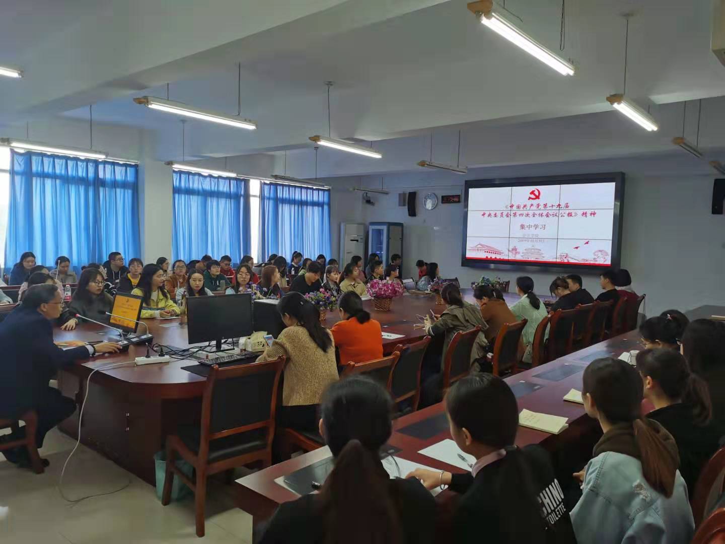 11月16日下午,委在明德楼2021会议室召开教职工大会,集中学习了《中国共产党第十九届中央委员会第四次全体会议公报》,随后教工第一第二支部全体党员集中学习了习近平总书记在十九届四中全会上的重要讲话。教工第一支部书记石道元等同志带头交流了学习体会。
