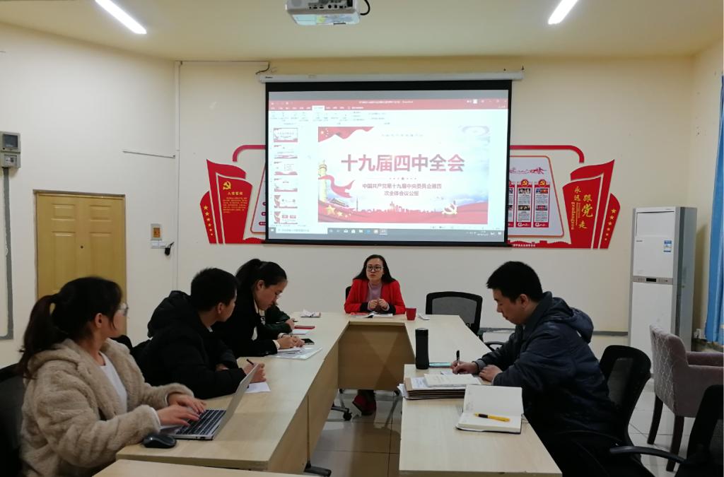 目前,学院正在推进十九届四中全会精神进科学研究、进课堂等工作,促进学习贯彻党的十九届四中全会精神往深里走、往实里走,往心里走,坚定信心,锐意进取,为坚持和完善中国特色社会主义制度、推进国家治理体系和治理能力现代化,实现党和国家长治久安、实现中华民族伟大复兴的中国梦而不懈奋斗。