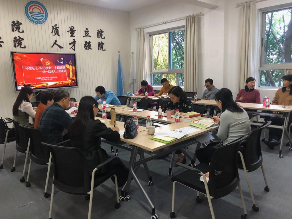 10月11日,bb贝博艾弗森官方网站在明德楼2016会议室召开统一战线人士座谈会,紧紧围绕bb贝博艾弗森官方网站一流专业建设等问题,开展“不忘初心 牢记使命”主题调研。分党委书记罗惠玉、副书记尹建平、副经理程文莉、黄辉,学院各民主党派人士、无党派代表、少数民族代表共20余人参加了会议。会议由分党委书记罗惠玉主持。