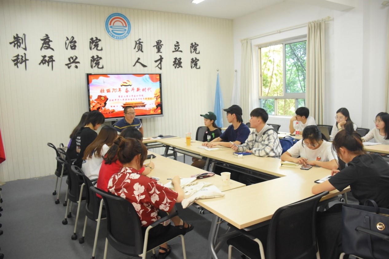 2018级会计专硕二班代表郭智同学结合专业学习,谈到了大数据对会计专业的影响,感受到了国家的发展对会计专硕毕业生条件的高要求,表示会更加努力学习,为国家的发展添砖加瓦。2017级会计学五班代表王雪榕同学从经济发展、教育改革、文化包容性、精准扶贫四个方面讲述了祖国日新月异的变化。2017级会计学六班李飞越同学结合义工志愿服务经历,切身体会到了我国中小教育发展的成就,深刻认识到作为新时代老员工应该有责任、有担当,不辜负青春,勇于追寻自己的梦想。2018级会计学一班刘鑫同学谈到国家一直都在大力支持和发展教育,从入学绿色通道、生源地贷款、国家贷款到国家助学金、国家励志奖学金,从中小学农村地区的营养餐,我们都能感受到国家对祖国未来的关心和爱护。彭文涛老师从教育工作者的角度谈到了:新中国成立70年来,在中国共产党的坚强领导下,在教育工作者的辛勤培育下,一代又一代具有家国情怀的人才不忘初心、牢记使命,怀揣着对祖国母亲深沉的爱,孜孜以求,把青春和汗水甚至是生命献给了祖国,为中华民族伟大复兴提供了不竭动力。