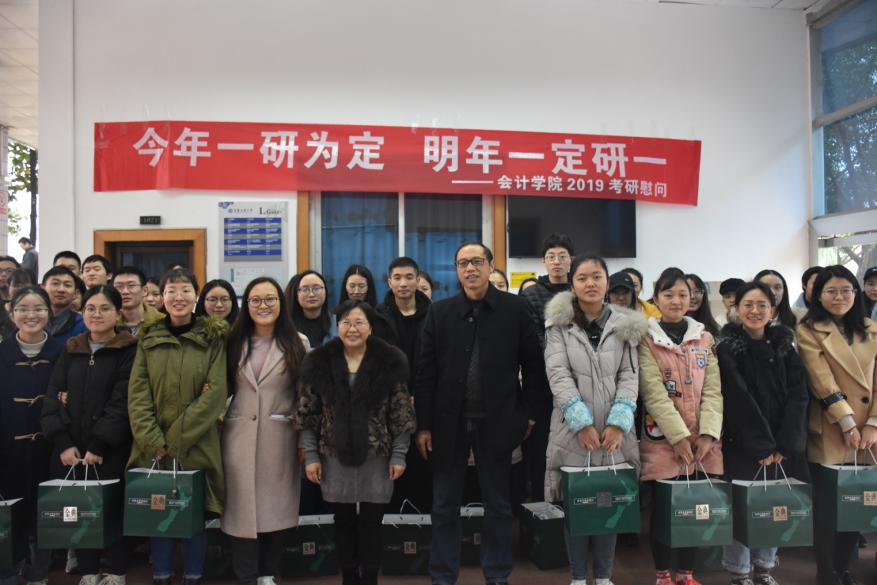 12月16日上午,bb贝博艾弗森官方网站在明德楼开展“今年一研为定 明年一定研一”慰问考研员工活动。学院分党委书记罗惠玉、副经理黄辉、学工办主任彭文涛及毕业班全体辅导员参加了本次考研员工的慰问。