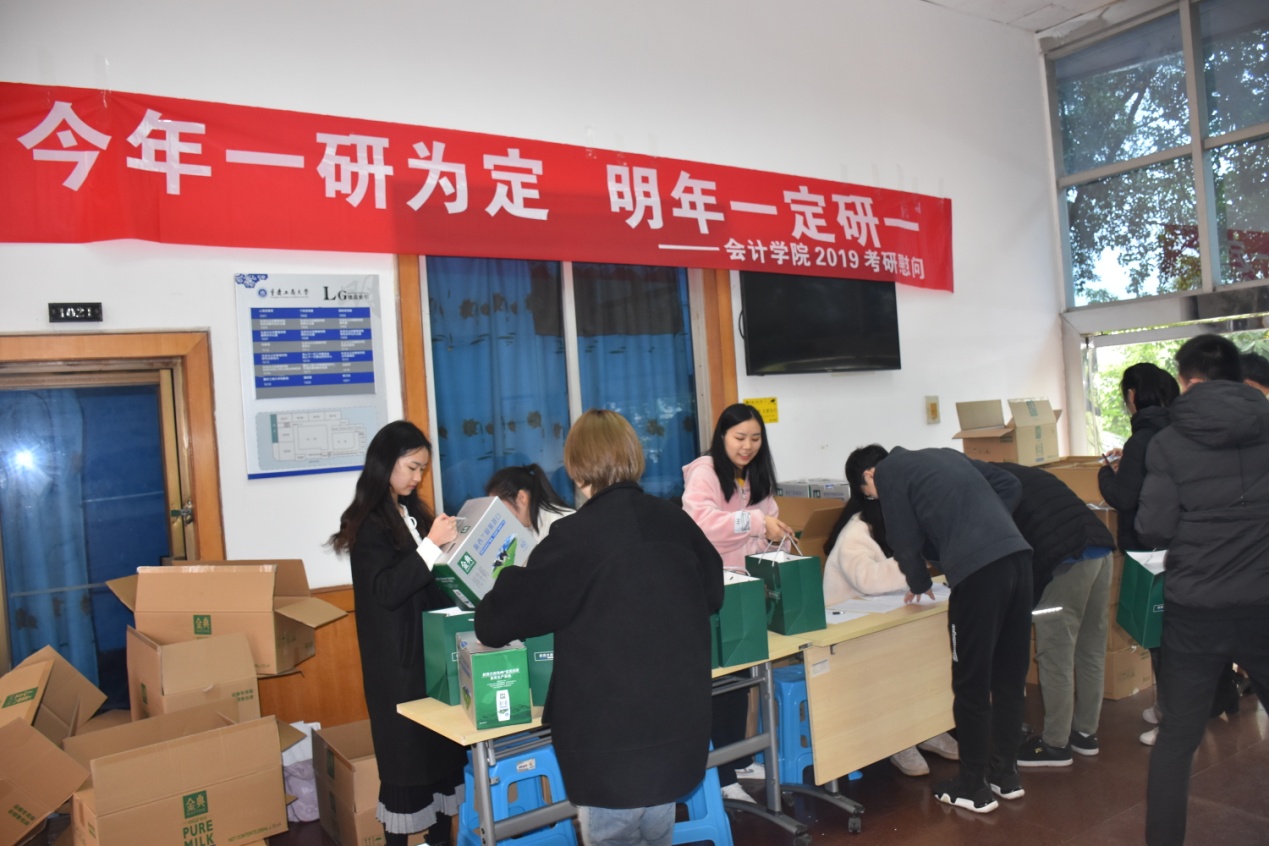 接着,学院领导和老师为学院考研员工送上了牛奶。