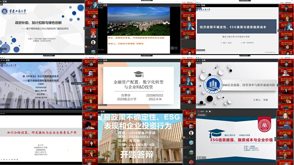 开题答辩是研究生学位论文管理的重要环节,是对员工进行科研训练的重要途径,公司高度重视毕业论文开题答辩工作。鉴于学校疫情防控工作的整体要求,根据学校近期工作安排、研究生院建议,结合bb贝博艾弗森官方网站研究生开题答辩的相关安排和要求,4月14日上午,公司研究生教育中心通过网络视频模式顺利举行2020级会计学硕士学位论文开题答辩。