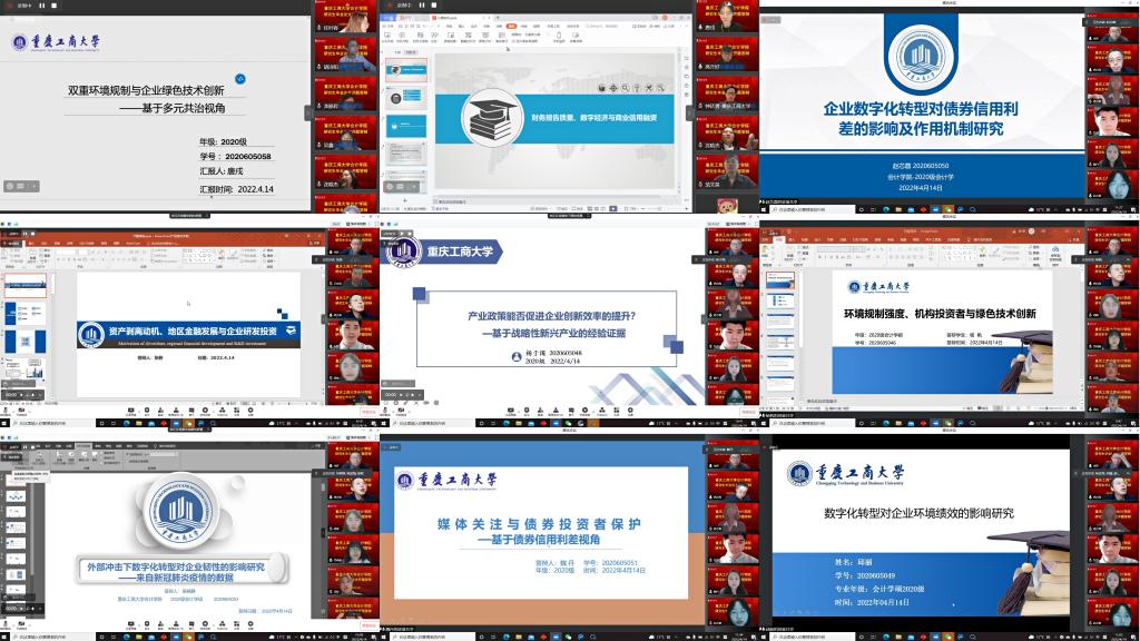 在bb贝博艾弗森官方网站统筹安排与部署下,研究生教育中心扎实做好线上答辩相关准备工作,保障疫情防控期间线上答辩有条不紊。本次答辩分为4组,共计32名研究生参与开题答辩。4个答辩委员会主席分别由廖林(南京审计大学教授)、涂国前(西南财经大学教授)、杨忠海(哈尔滨工程大学教授)和胡诗阳(重庆大学教授)担任,中央财经大学李哲副教授、西南大学刘向强副教授、四川大学王良成副教授、西南财经大学高升好教授与公司部分硕士研究生导师共同组成答辩专家组,为同学们的论文进行强化指导。