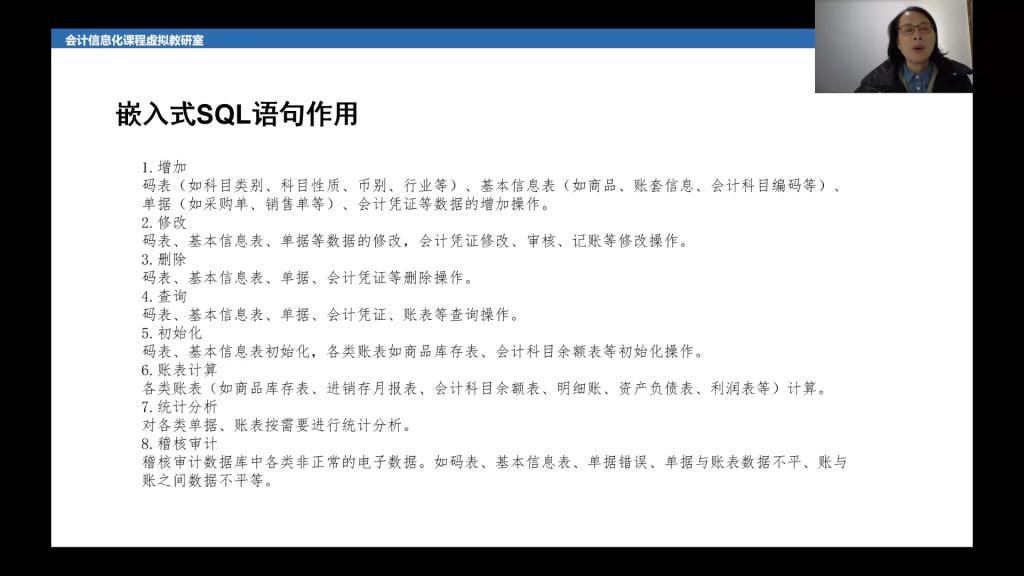 第二十八期的教学工作坊以“掌握嵌入式SQL语句以及函数的基本应用”为主要授课内容,陈旭教授首先用ppt向同学们说明嵌入式SQL语句的作用以及如何使用。讲授完理论知识后,陈旭教授在PowerBuilder软件中进行对上节课所做的商品信息管理的优化,通过嵌入式SQL语句实现对商品信息的数据初始化、查询、增加、删除、修改等管理。接着还演示了通过嵌入式SQL语句实现系统登录(应用已经创建的案例数据库,通过判断数据库中操作员表数据的合法性实现系统登录),以及库存、数量月报表的计算等等。之后,陈教授带着同学们了解了日期时间函数、字符处理函数、数值处理函数、数据类型检查与转换函数及其他应用函数,并在销售单查询中进行实际运用。