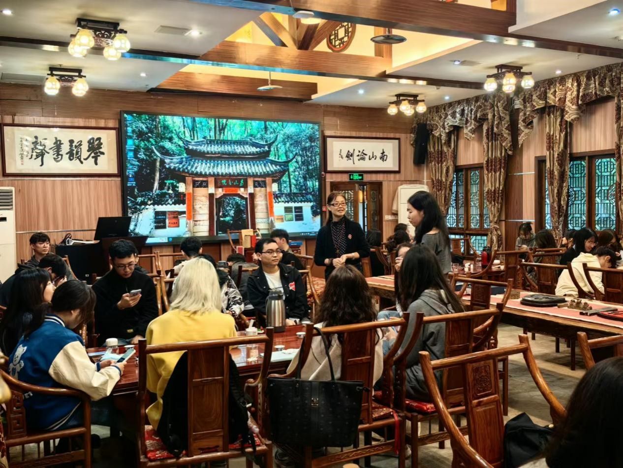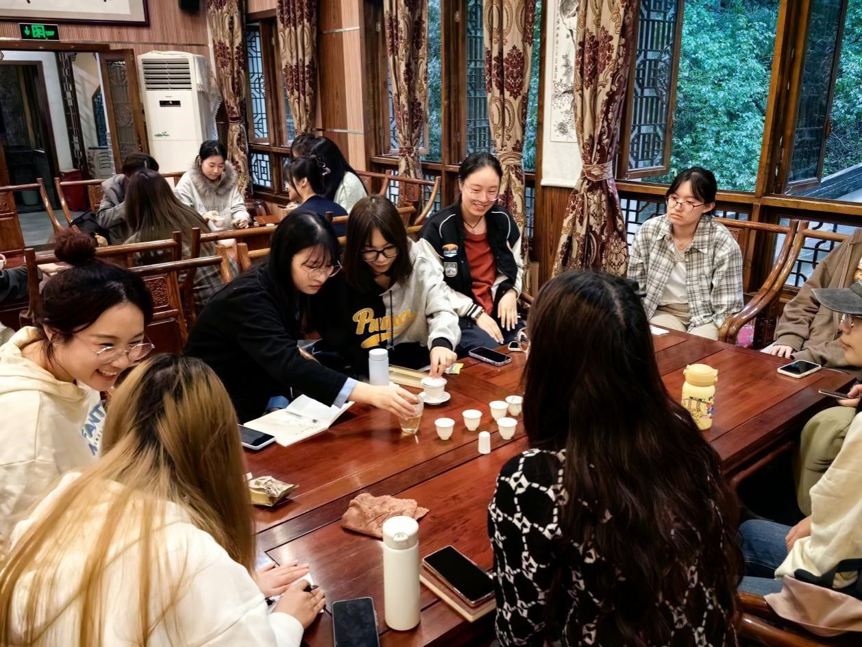 本次课程由ballbet贝博官方网站工商管理学院教授胡宝娣担任教学老师。在书院古色古香的氛围中,此次《茶道》课程正式拉开了帷幕。课程之初,胡宝娣老师首先讲解了泡茶流程。依次介绍了三才碗、公道杯、品茗杯、茶荷,茶洗的功能,三才即天、地、人;公道杯示意茶人平等,众人均分,传达公道精神。接着,同学们以泡闽南安溪铁观音为实践,入碗闻香,泉水泡茶,随后再进行品茗,品尝茶的清香与余味。随后,同学们以小组为单位,分别来品尝永川秀芽、岳阳黄茶、熟普、春寿眉、大红袍、金佛山红茶,感受了绿黄黑白青红六大种茶叶的不同之处。最后,胡宝娣老师邀请同学们分享品茗感受,各位同学各抒己见,感悟颇深。