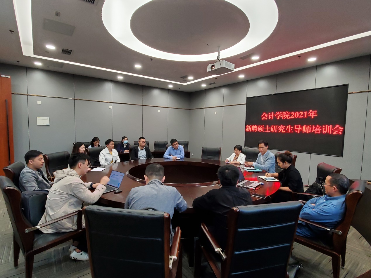 为贯彻落实全国研究生教育会议精神,进一步落实研究生导师立德树人职责,根据《ballbet贝博官方网站硕士研究生学业指导教师条例》(重工商大〔2021〕108号)文件要求,10月14日中午,bb贝博艾弗森官方网站在图书馆第四会议室举行2021年新聘硕士研究生导师培训会,学院分党委书记罗惠玉、副经理钟廷勇、MPAcc负责人陈欢、审计专硕负责人王杏芬及2021年新聘硕士研究生导师参加了会议。