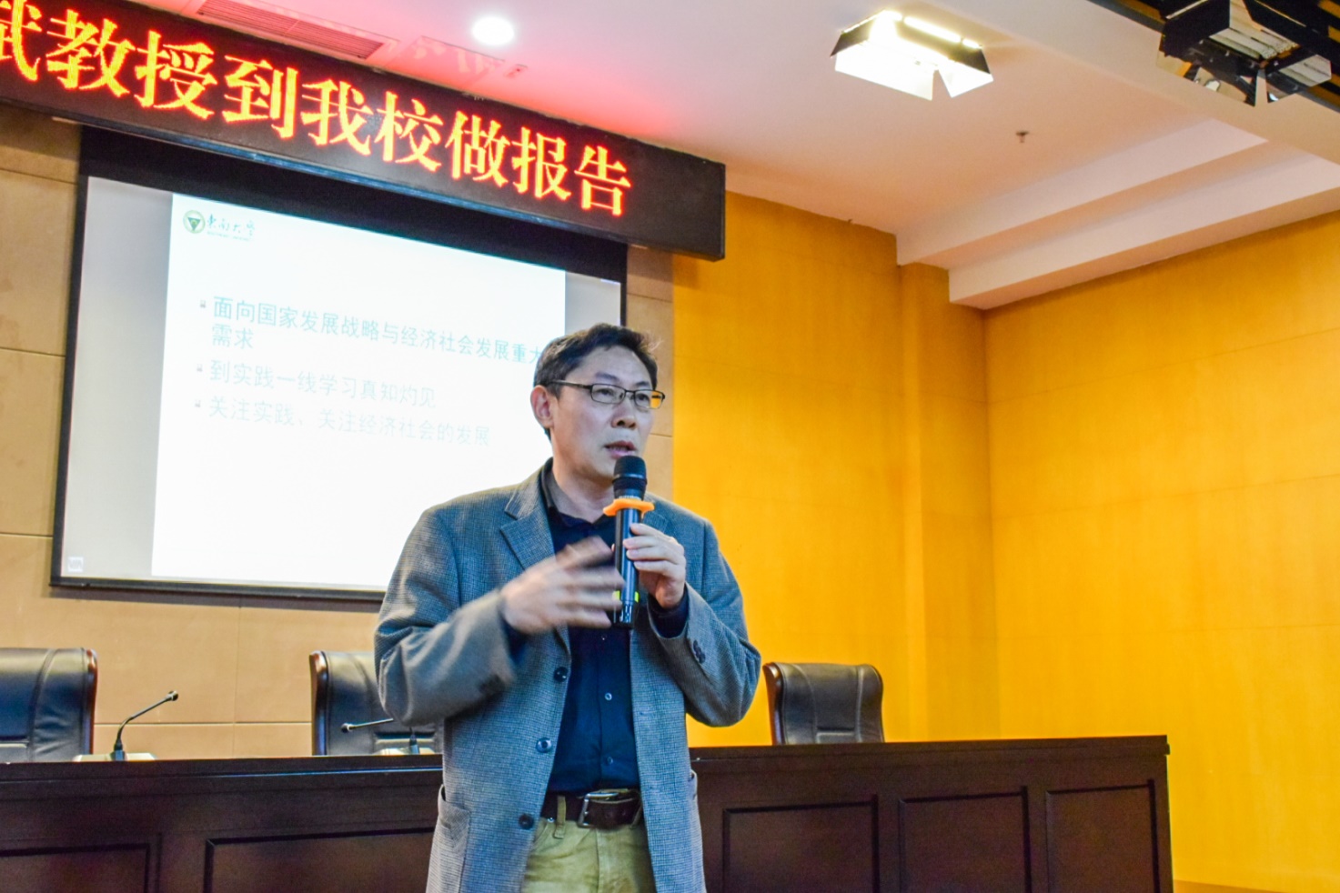 报告伊始,陈志斌教授提到了当今科研面临的问题——如何选择研究领域、如何科学选题,并引用习近平总书记在科学家座谈会上的重要讲话为我们解答了疑惑,即“坚持需求导向和问题导向”、“从国家急迫需要和长远需求出发,真正解决实际问题”。随后,陈教授介绍了自己的三个主要研究方向,一是面向国家发展战略与经济社会发展重大需要;二是到实践一线学习真知灼见;三是关注实践、关注经济社会的发展。报告上,陈教授还和同学们进行了互动,指引同学们思考以销售预算为基础编制预算报表的不足和对策,其形象生动的解答引起现场热烈掌声。