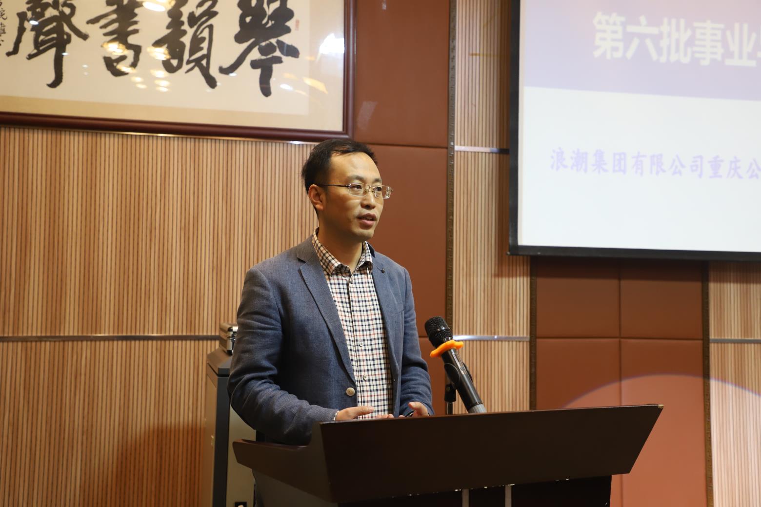 最后,第六届事业导师代表浪潮集团有限公司重庆公司副总经理王宏波先生发言。王宏波先生畅谈了担任事业导师的感想,并表示一定会耐心指导员工、传授经验,履行好事业导师的职责。