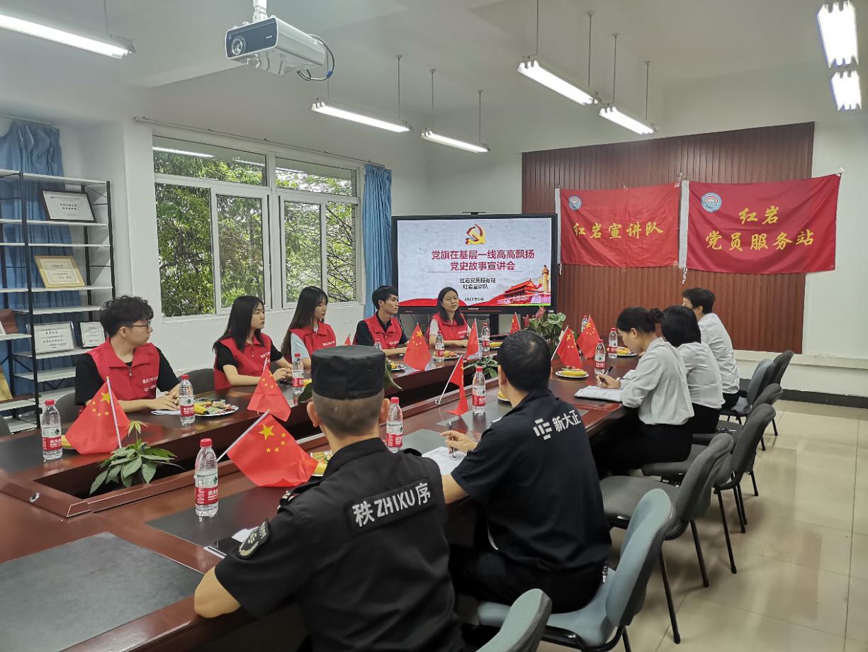 2021年5月21日,bb贝博艾弗森官方网站红岩党员服务站、红岩宣讲队深入新大正物业公司,在崇德楼313会议室为其员工开展了专场党史故事宣讲活动。