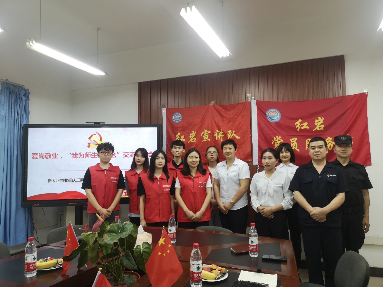 活动伊始,王婷老师向新大正物业的教职工代表们介绍了红岩党员服务站、红岩宣讲队以及“党旗在基层一线高高飘扬”活动相关情况,引导师生从党史故事宣讲中汲取前行的精神力量,做到学史明理、学史增信、学史崇德、学史力行。随后,由的三位红岩宣讲队代表为大家带来了非常精彩的党史故事。他们分别以赵世炎——“世有炎凉,仍乐此生”、黄继光——“穿越时空的家书”、毛泽东——“弥天大勇,深入虎穴”三则故事铺开了一幅“不因丧命而胆怯,惟愿吾身殉国难”的革命时期的壮阔画卷。现场人员无不被鲜活的故事讲述深深打动。最后,新大正物业邓娅莉经理为此次活动做了总结。她说物业服务管理水平直接影响到员工的生活环境、关系员工的幸福指数。因此物业从业者也应该积极向英雄模范学习,传承红色基因,以高质量的服务做好公寓社区工作。