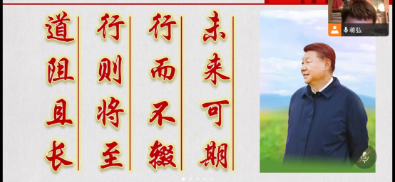 接着,在“好…好…学习”专栏,丛巍老师给大家分享了现代诗人舒婷的爱国诗《祖国啊,我亲爱的祖国》。丛老师介绍了诗歌作者、创作背景以及诗歌内容。该诗发表于1979年4月,正值十一届三中全会后的第一个春天。诗人面对祖国摆脱苦难、正欲奋飞的情景,以自己独有的抒情方式写下了此诗。诗的前两节描述祖国的过去,充满了对灾难深重的祖国的哀痛之情,后两节流露出对祖国摆脱苦难、迎接新时代的希望和欢欣之情。丛老师播放了配音演员徐涛的朗诵,在荡气回肠、慷慨激昂的朗诵声中,党员们对祖国的爱得到了升华。