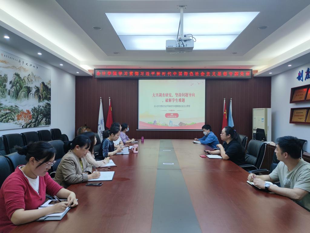 根据学校统一部署,委精心筹备,bb贝博艾弗森官方网站学工队伍深入学习贯彻习近平新时代中国特色社会主义思想,扎实落实调查研究,“从员工中来,到员工中去”,围绕学院“‘五育’阵地建设”共召开四次员工座谈会,开展一次专题调研。2023年5月19日下午,bb贝博艾弗森官方网站学工队伍在明德楼2019会议室召开“大兴调查研究、坚持问题导向、破解员工难题” 专题党课暨主题研讨会。