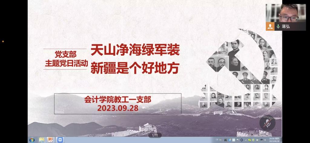 新疆是中国陆地面积最大的省级行政区,占我国陆地国土总面积的六分之一。一个安全稳定、欣欣向荣的新疆,既反映出我国经济社会发展的巨大成就,也体现出全国各族人民在党领导下的团结一心、众志成城。2023年9月28日,bb贝博艾弗森官方网站教工一支部以“天山净海绿军装,新疆是个好地方”为主题,学习了“习近平在听取新疆维吾尔自治区党委和政府、新疆生产建设兵团工作汇报时的重要讲话精神”和“习近平在首个全国生态日到来之际作出的重要指示精神”。本次活动由蒋弘主持,一支部全体党员参加。