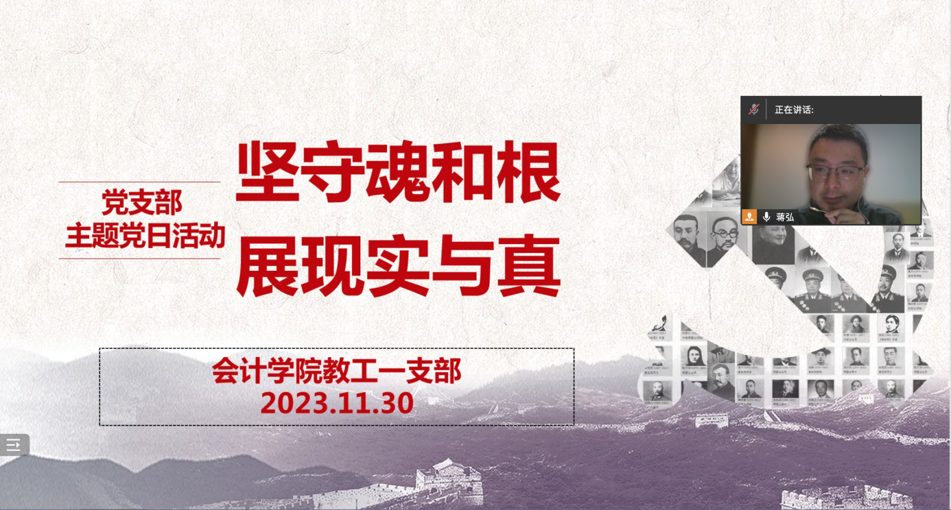 中国共产党人要坚守马克思主义这个魂脉和中华优秀传统文化这个根脉,为迎接中华民族伟大复兴和应对百年未有之大变局提供创新方案,展现出实践和真理的伟大力量。2023年11月30日,bb贝博艾弗森官方网站教工一支部以“坚守魂和根,展现实与真”为主题,开展了主题党日活动。活动由支部书记蒋弘主持并领学,支部全体党员参会,支部还特别邀请了入党积极分子宋昕倍博士观摩学习。