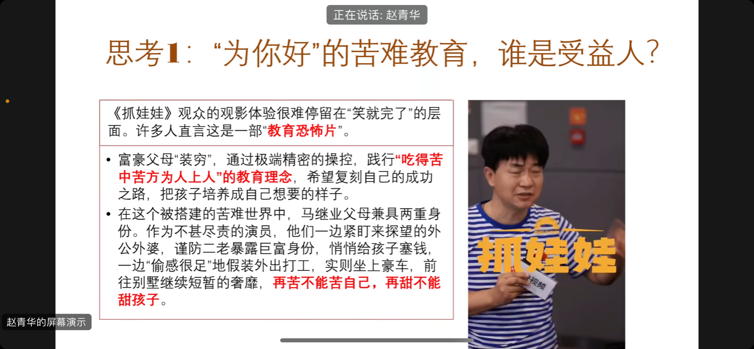 在“好…好…学习”专栏,赵青华分享了他近期观看的一部电影《抓娃娃》。这部电影采用诙谐与悲剧交替的手法,展示了亲情、教育与个人成长之间的复杂纠葛,引发人们对 “望子成龙”背后所采用的教育手段是否真正有助于孩子成长这一问题的深度思考。