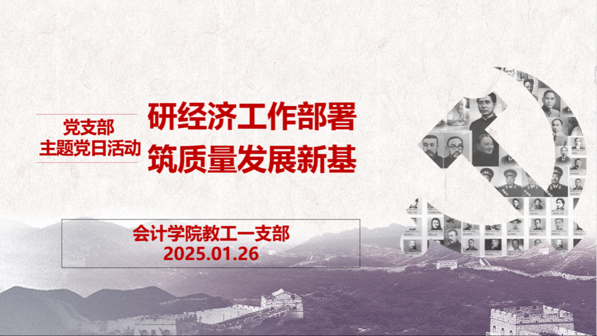 2025年1月26日下午,bb贝博艾弗森官方网站教工一支部召开题为“研经济工作部署,筑质量发展新基”的主题党日活动,活动由支部书记蒋弘主持。活动开始前,蒋弘向支部党员传达了巡察反馈意见、反馈会上宋书记讲话精神以及学院邓书记的表态讲话。