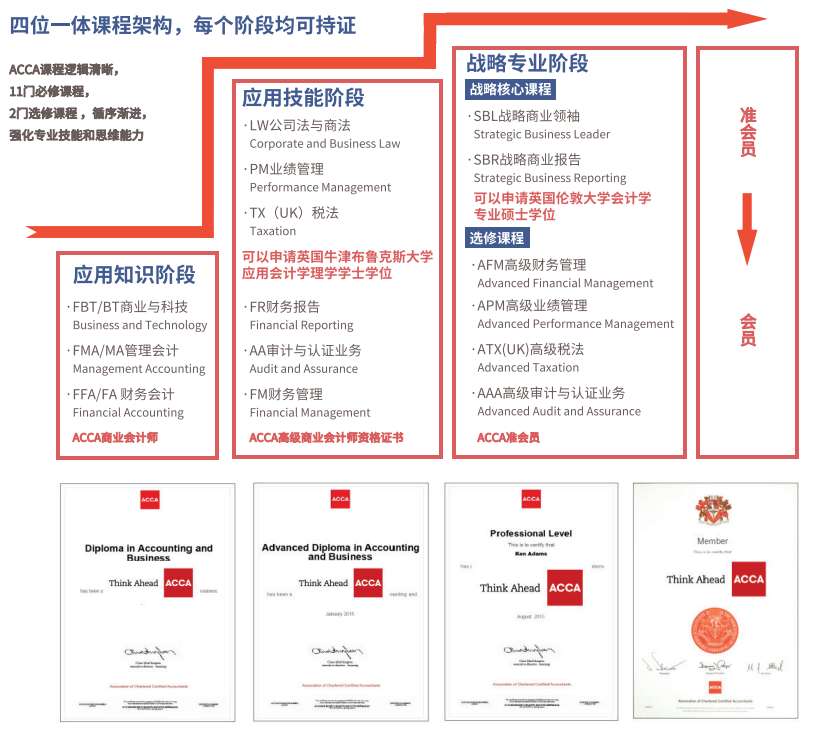 ACCA业余制班员工额外获得以下的学位申请资格以及四位一体的阶段证书激励。
